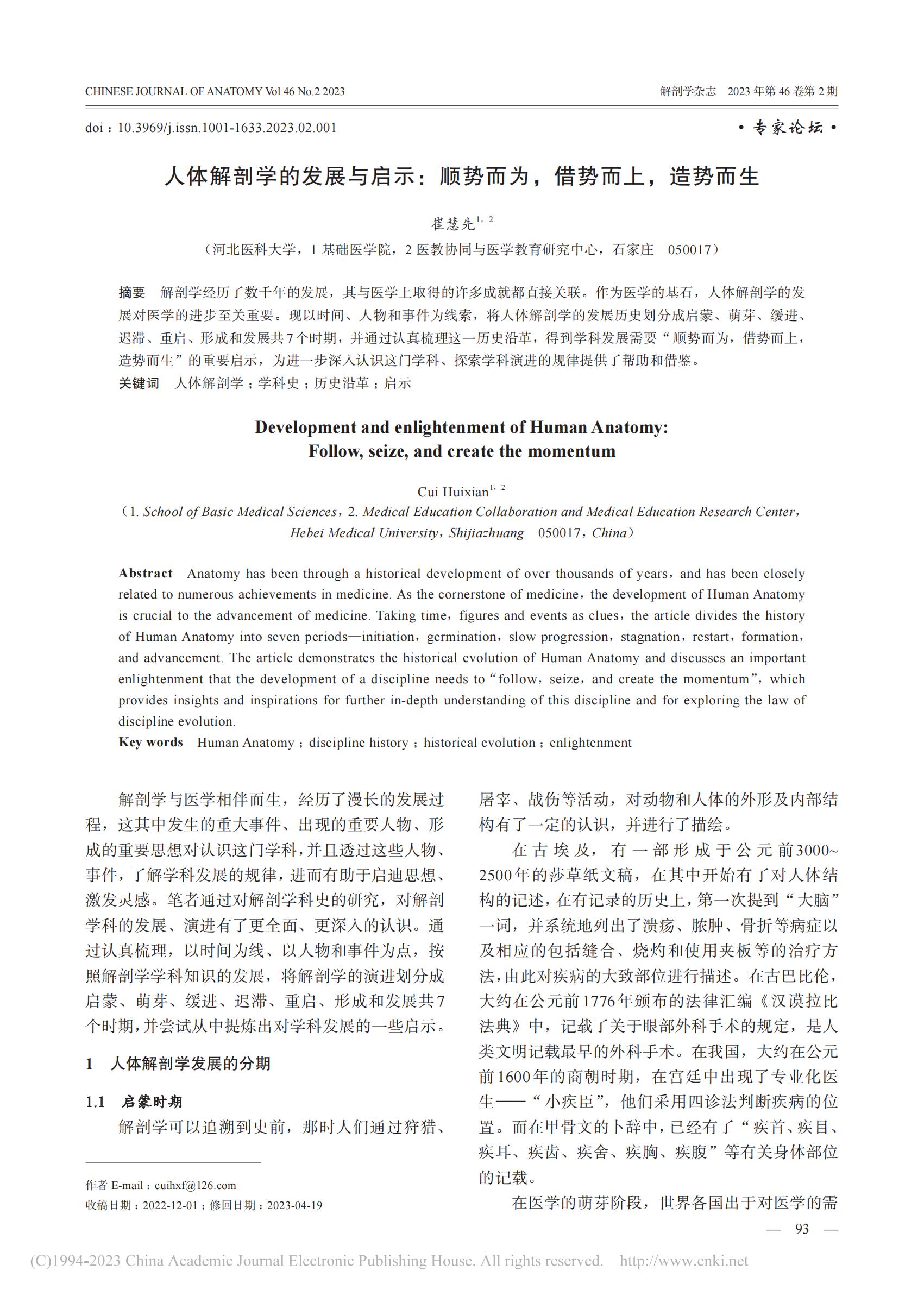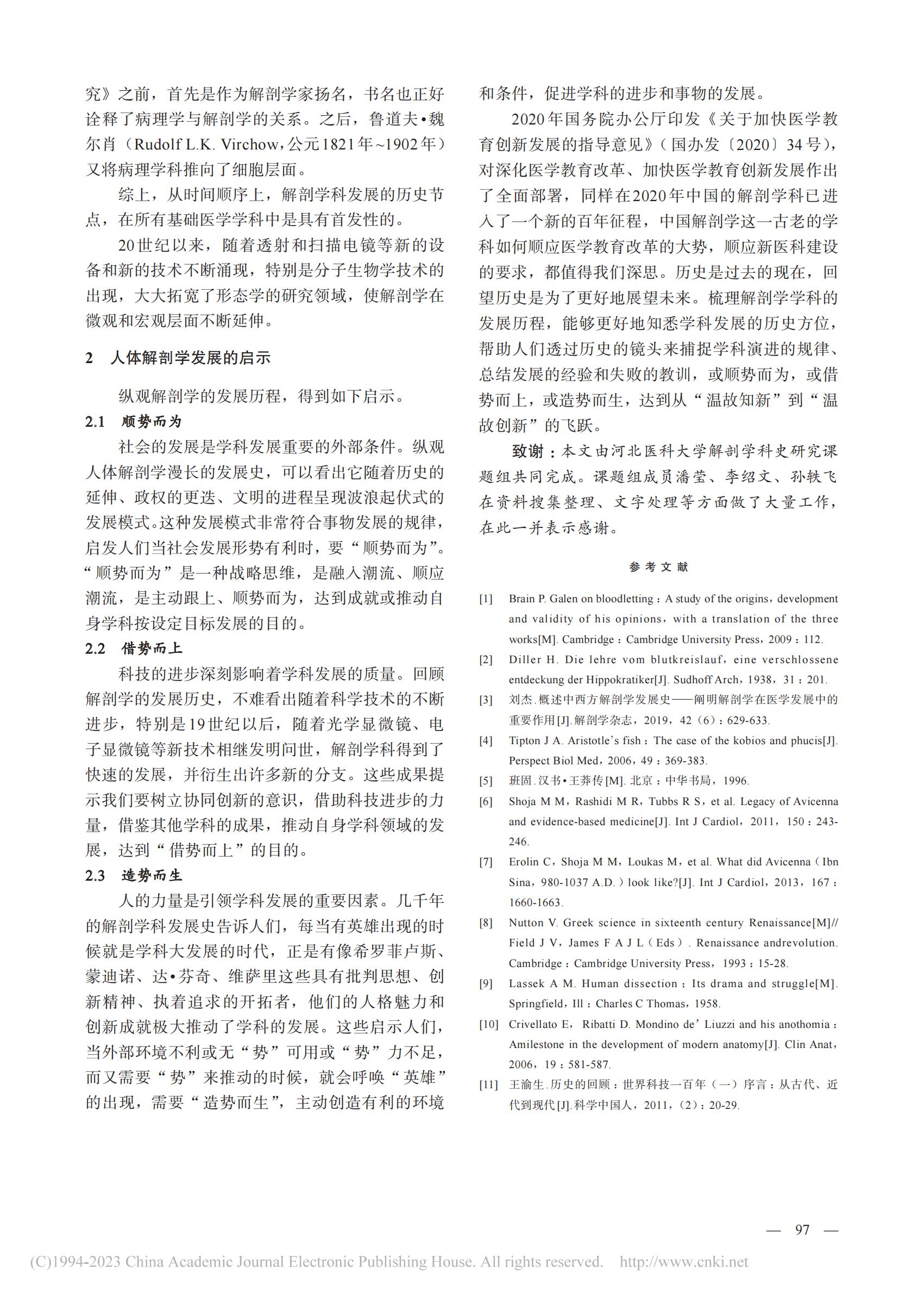 学术论文:人体解剖学的发展与启示:顺势而为,借势而上,造势而生